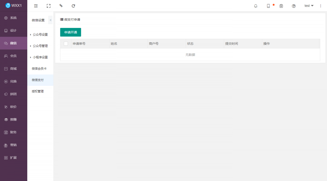 1、在管理后臺(wxx1.com)點擊【微信】-【微信支付】